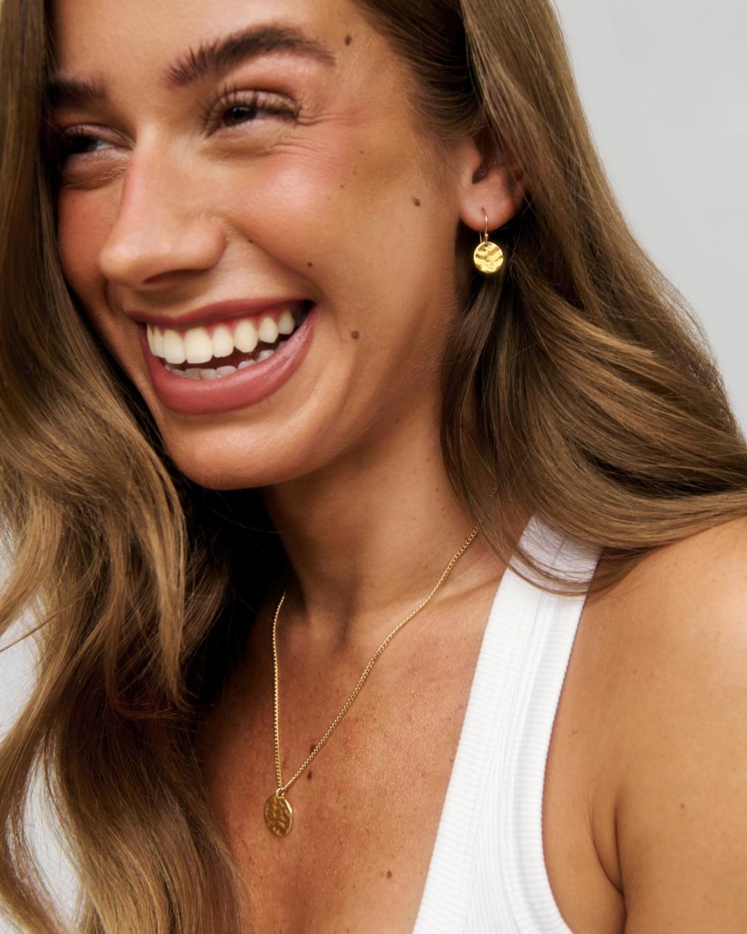 Our gold pieces are gold vermeil, which is a sterling silver core with a thick layer of 18kt gold covering it — 2.5x thicker than standard gold plating.